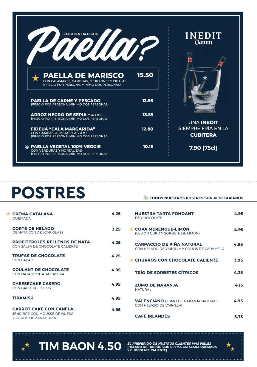 It’s a nice restaurant to have lunch since they have a special combination choices for soup starters. Main menu, desert and drinks for only 24.95 euros. The service was great but the seafoods and meat Paella was not as I expected, however the fish soup, churros and wine was good